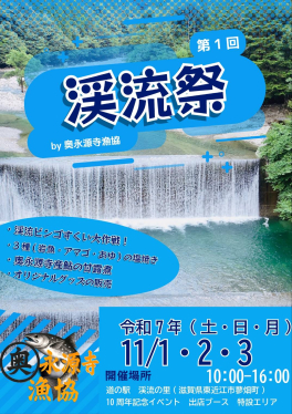 組合のイベント【奥永源寺、第1回渓流祭】を行います。