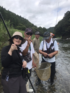 |  |  |  | 今日も晴れて暑い一日でした。減水気味で釣りづらく成ってますが、皆さん頑張って、良型を上げられていました。渓流は、源流部で尺物交じりで天然物が活発ですが、水が少なくて水温も高いので、魚はシビアになっています。工夫して頑張って下さい。