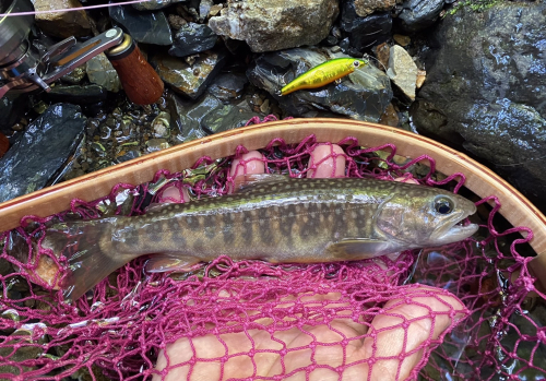 |  |  |  | 渓流は、暑くなって来て水温が上がり、シビアになって来ました。天然物が、フライ、テンカラで好反応です。