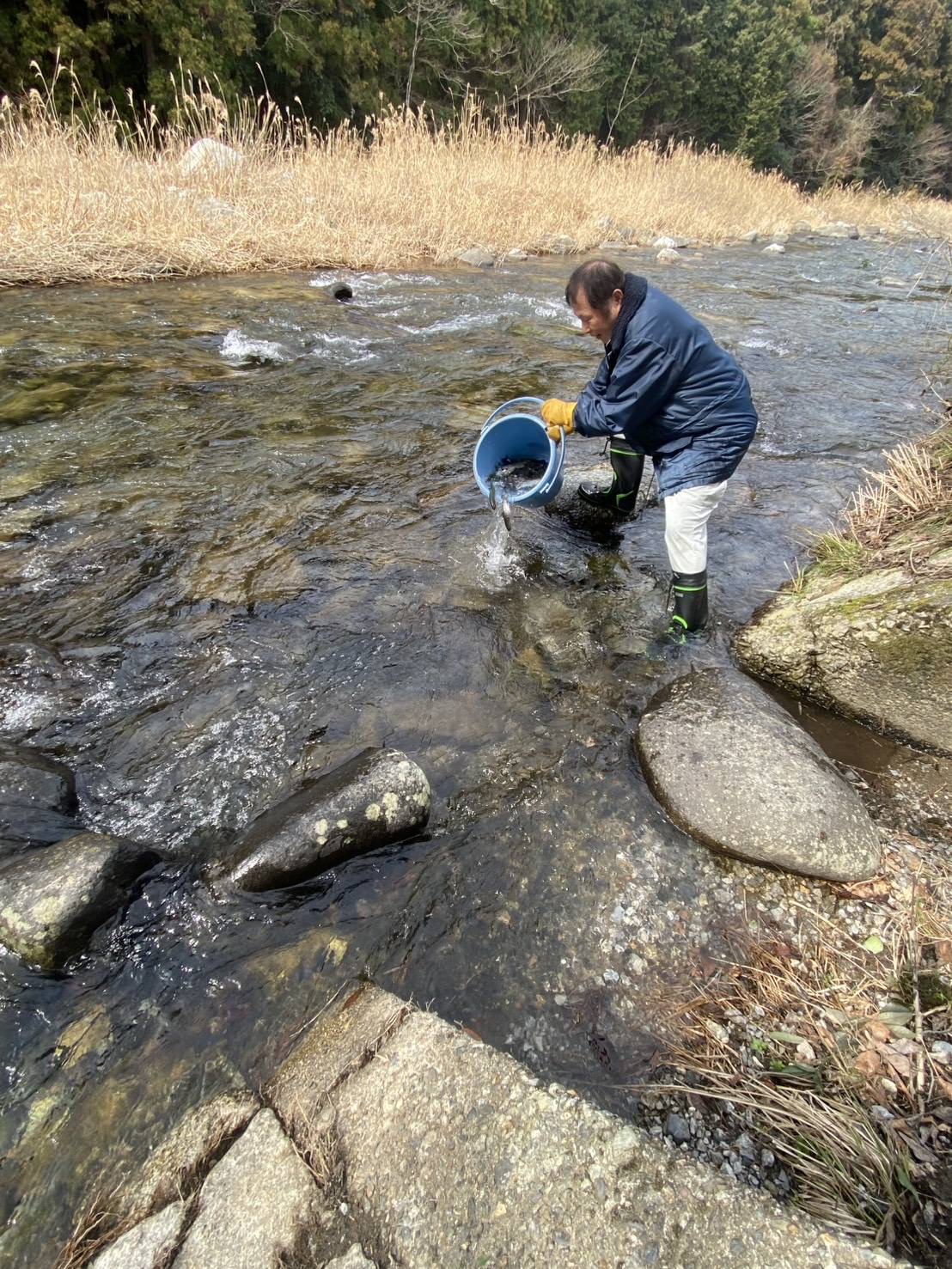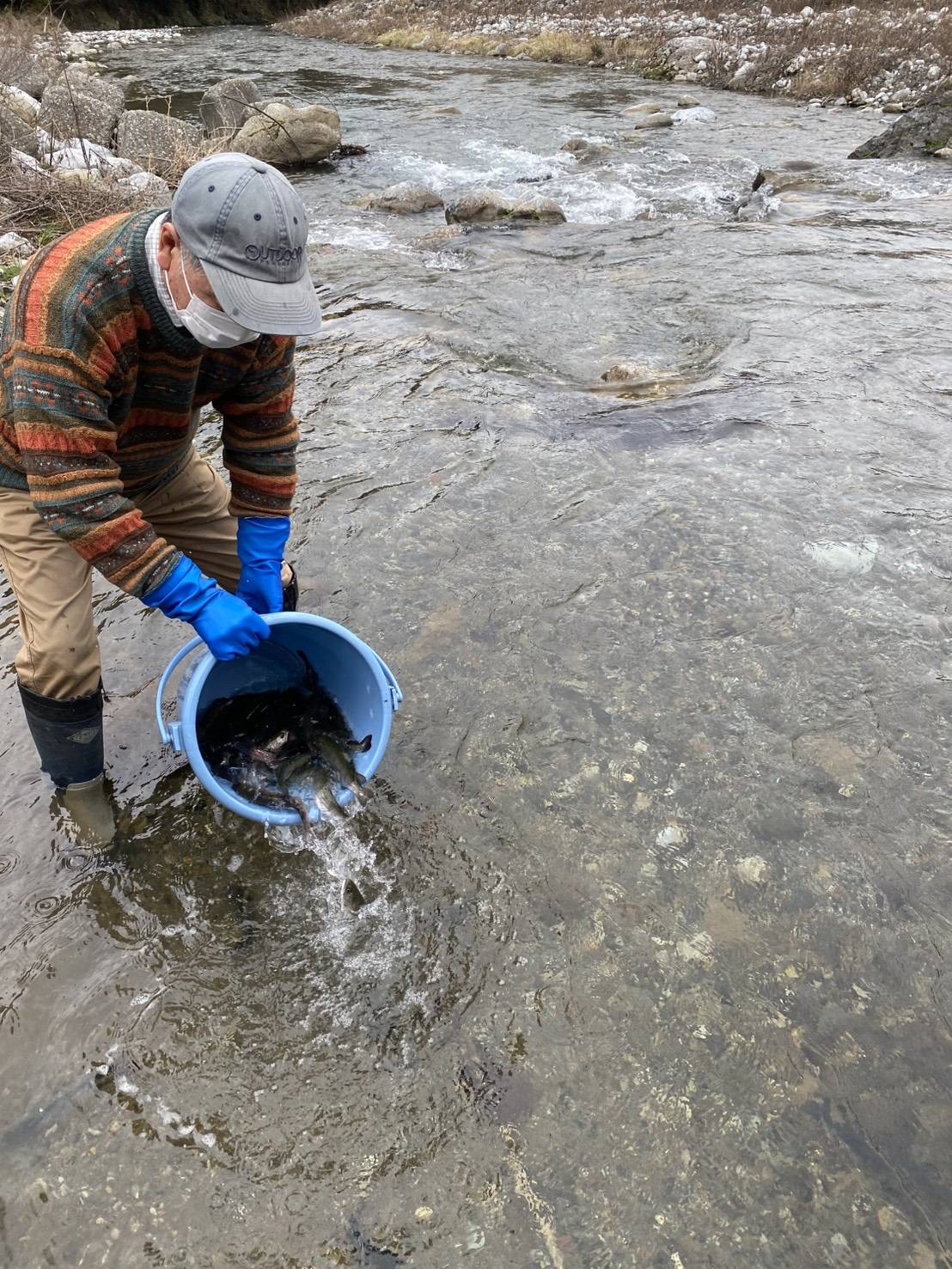 明日の解禁にむけて本日成魚を放流しました。